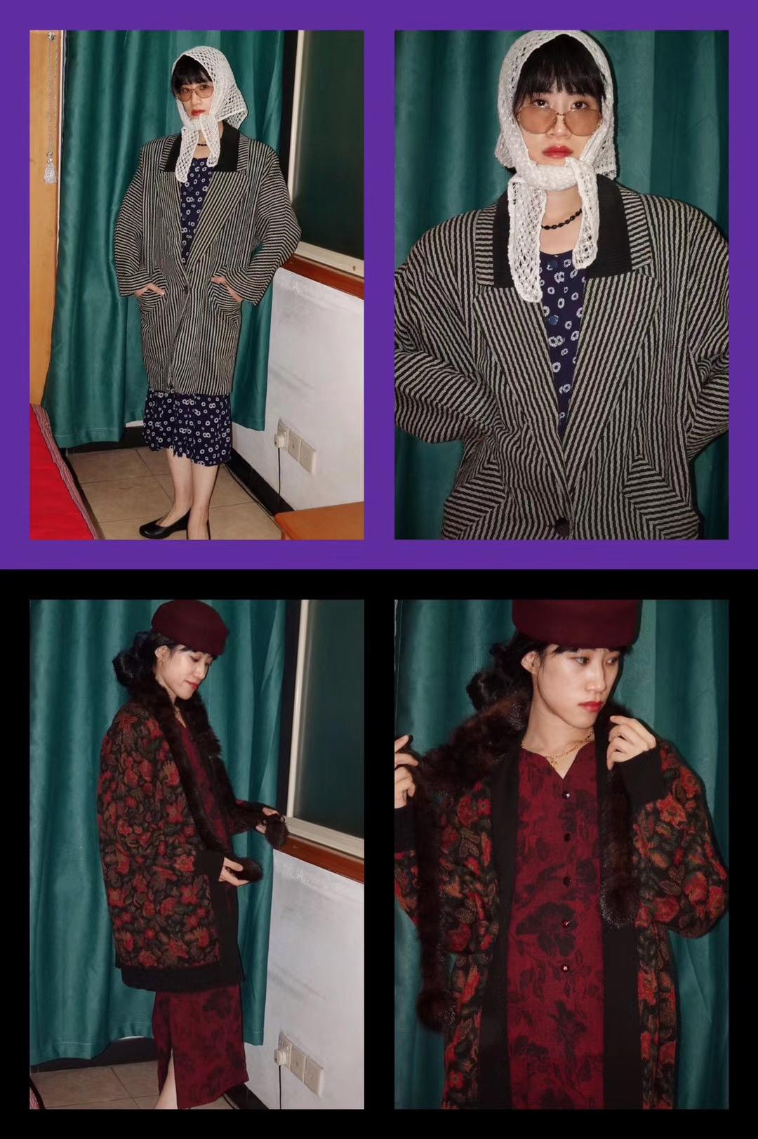 去年十月,一直热衷复古穿搭的 Helene 在朋友圈发布了一组照片。她为自己搭配了十二套复古装扮,圆顶宽檐帽、针织披肩、酒红毛呢帽、藤编腰带、貂围巾......并附上了文案“这些都曾属于我的外婆”。她的外婆去世了,留下了很多衣物并险遭丢弃。Helene 将这堆衣物拦截下来,再做挑选、整理、重新搭配,对于她来说,对旧物的偏好一部分是出自于对情感和回忆的保存。