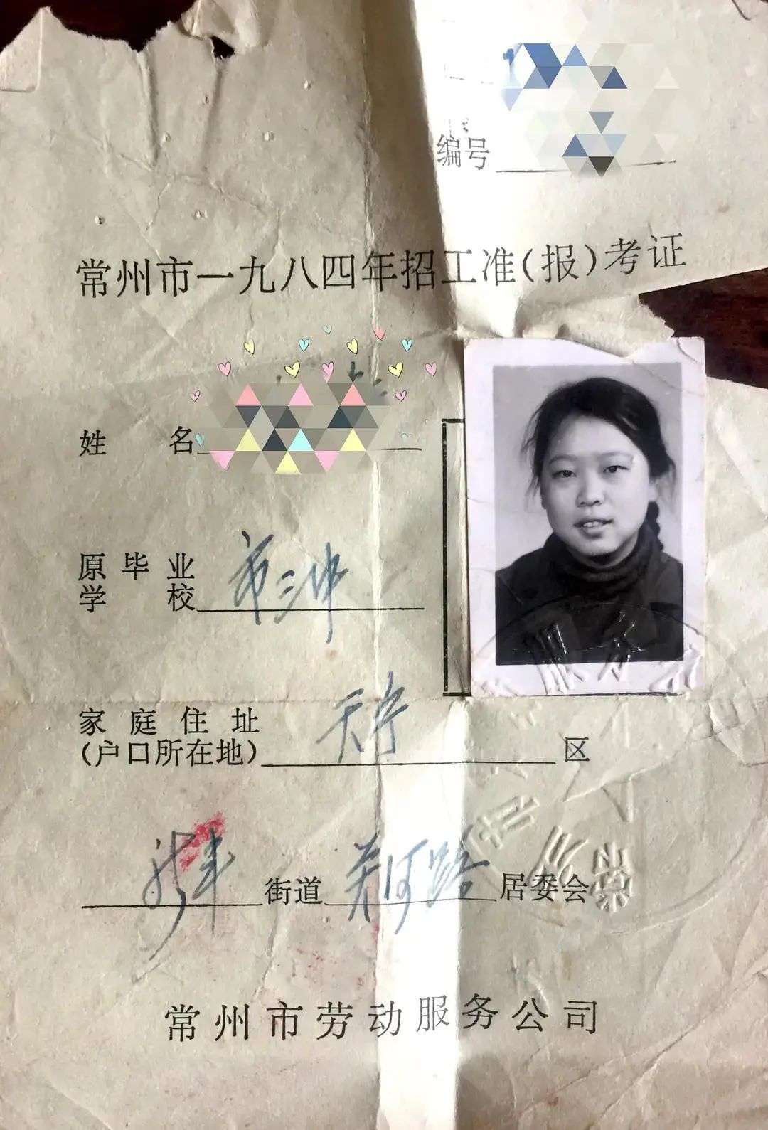 网友 @流年恋榴莲 分享自己的招工准考证
