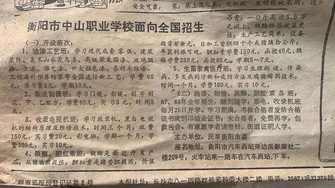 网友@小熊猫 分享的一张旧报纸的职业学校招生广告