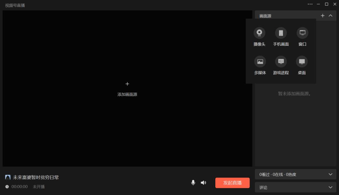 ▲微信 3.2.1 for Windows 直播界面,可以添加六种不同的画面源