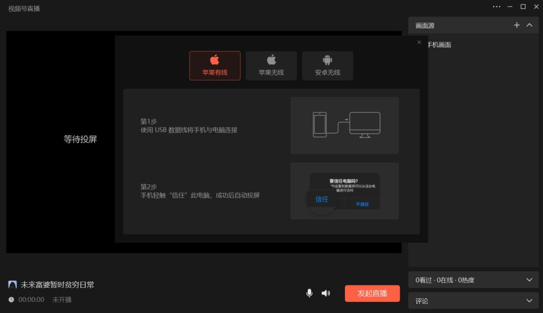 手机画面:这个的原理和智能电视相同。在手机上进行画面的设置和配备,即可将手机画面投屏至电脑。通过手机进行更丰富的演示。