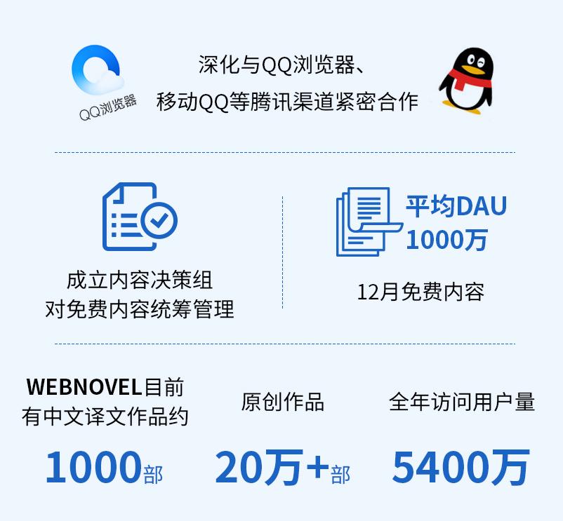 值得注意的是,阅文依靠优质内容在为平台持续吸引用户,带来营收的同时也在免费日阅读赛道开始发力。2020年阅文通过与QQ浏览器、移动QQ等腾讯渠道进行免费内容分发合作,为阅文挖掘用户增量。截至2020年12月,阅文平台免费内容的DAU已经达到约1000万。