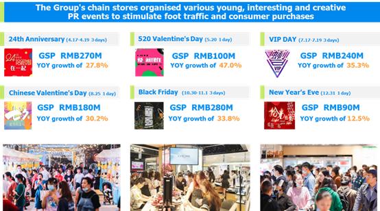 金鹰积极把握都市人群的社交需求,持续策划打造现象级IP活动,全年举办活动千余场,让商业空间成为都市人群文化社交的媒介,通过更高阶的活动玩法,给消费者带来多元体验,激发共鸣,实现客流及销售稳步回升。