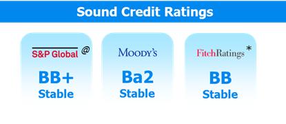 而这一点标普、穆迪、惠誉三大国际评级机构也给予了肯定,它们对于金鹰商贸的信用评级均调整为稳定,其中标普在去年11月份调整为BB+。