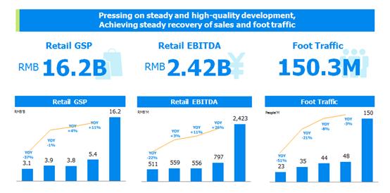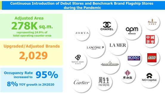 据显示,去年共调整柜位面积27.83万平米,占总柜位面积的24.9%;升级调整品牌2029个,出租率从疫情后的87%提升至95%。