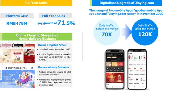 在去年,金鹰购全年业绩同比上升71%,与门店服务关系密切的金鹰购门店到家业务成为了主要的流量型业务。金鹰购上线的7家品牌旗舰店品牌拉新率超过65%,而在今年,金鹰购将计划开设100家品牌旗舰店。