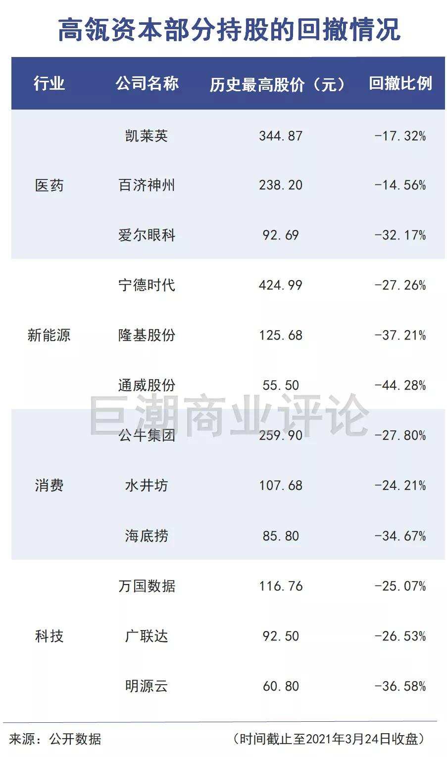 时间进入到2021年2月后,A股、香港和美国市场全部出现了大面积的下跌回调,优秀成长型企业的股价遭遇了风险释放,高瓴所持有的企业也没有例外。
