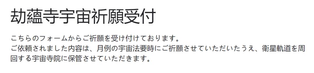 现在,劫蕴寺官网也可以接受线上祈愿了,只需要填写一些简单的数据,就能将你的心愿成功暂时保存在地球上,两年后直飞太空,开启太空巡游。