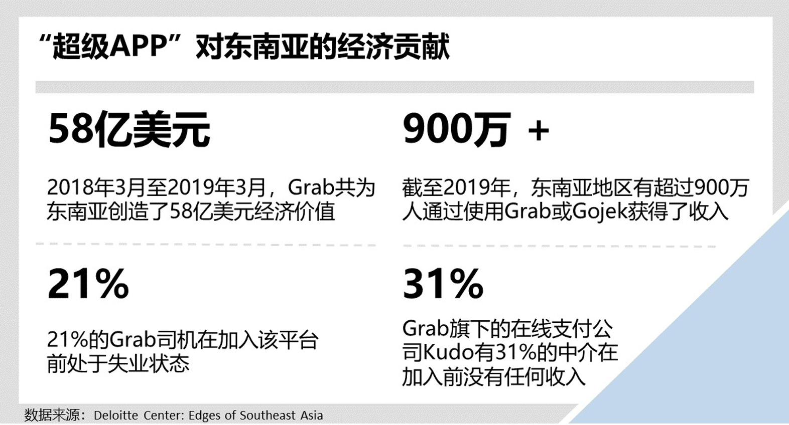 2019年东南亚打车软件用户达到4000万,电商软件用户达到1.5亿,对于许多东南亚人来说,超级 APP 正变得越来越不可或缺,这也预示着互联网经济未来将成为推动东南亚社会经济变革的一大力量。