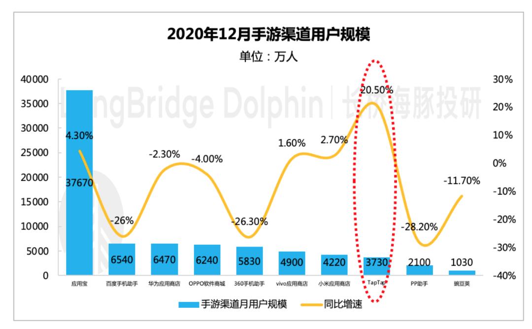 鉴于TapTap年底大事不少(新游发行、年度游戏大赏、腾讯华为事件),不死心的我去第三方数据平台看了下,按照Mobtech的监测数据测算,去年12月TapTap的活跃用户达到了3700多万,虽然不是官方数据,但增幅来看,还是能够令我对今年一季度表现有所期待的。