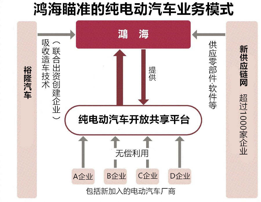 熟悉中国大陆和台湾汽车和电子行业的瑞穗银行的主任研究员汤进也认为,“鸿海成为纯电动汽车行业平台提供商的可能性很大。与华为技术的合作将来也可以预期。纯电动汽车也将和智能手机同样,由两岸企业合作控制生产,成为行业的核心”。