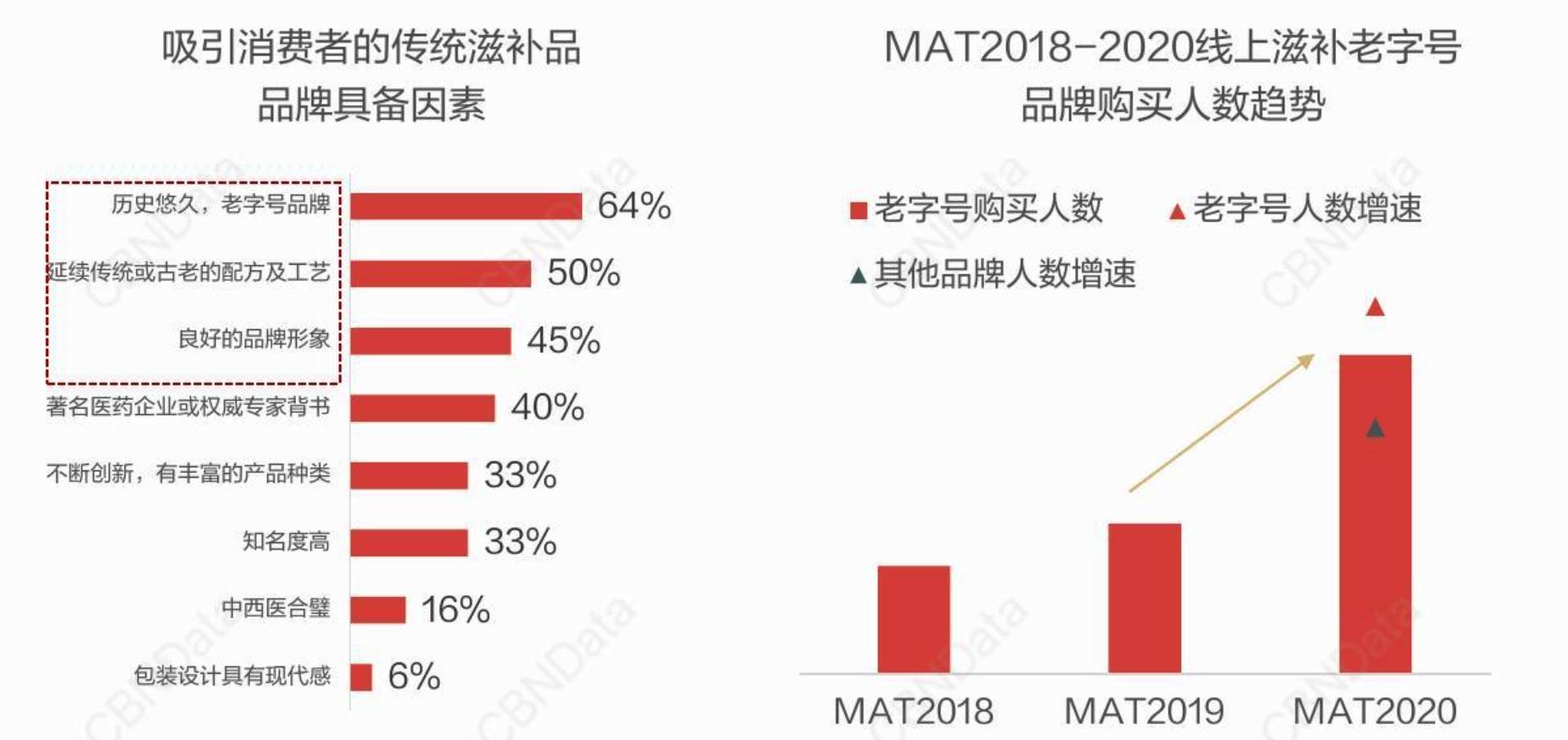 《2020中式养生行业洞察》显示,线上滋补呈现年轻化趋势,老字号品牌所代表的传统滋补品成为热门选择。功效、品牌力与服用方便,是消费者购买时考虑的重要因素。