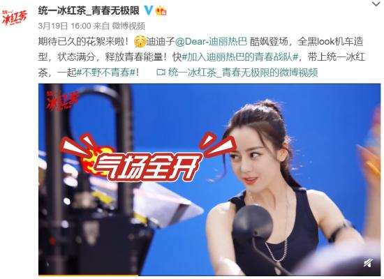 3月19日,统一企业中国(下称统一)发布了2020年财报,同一天,已经预热好几天的统一冰红茶官方微博,也正式宣布迪丽热巴为旗下的新任代言人。