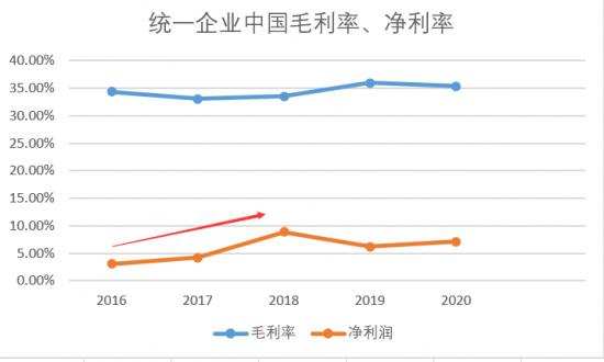 事实上,“熔财经”看到,从16年开始,统一的销售费用和管理费用都在逐渐降低,这一点可以印证上面的推测。营收规模没有同比扩大,成本在逐年减少,利润逐年有双位数的增长,这些都说明了一个问题,就是统一这些年的利润增长,并不是光靠总收入同步增长带来的,也靠“压缩成本”带来的。