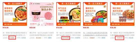 过去几年,统一的“高端化战略”初见成效,从天猫商城的销售数据来看,尽管以“汤达人”为主的基础冲泡方便面仍然是店内的销售冠军,但像近年比较流行的网红风格鲜煮方便面,也有不俗的销量。