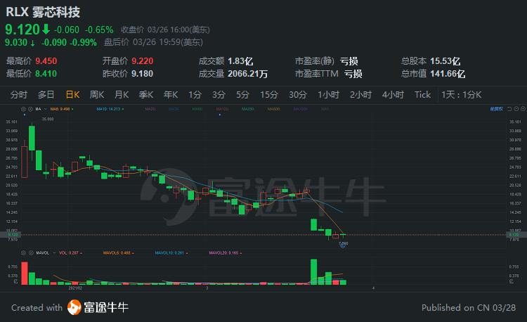 2、雾芯科技本周受电子烟监管征求意见稿影响,股价大幅下跌超50%。本周工信部公布了《关于修改<中华人民共和国烟草专卖法实施条例>的决定(征求意见稿)》,在附则中增加一条,作为第六十五条:「电子烟等新型烟草制品参照本条例中关于卷烟的有关规定执行。」监管的可能的力度超出市场预期,导致雾芯科技股价大幅下跌。