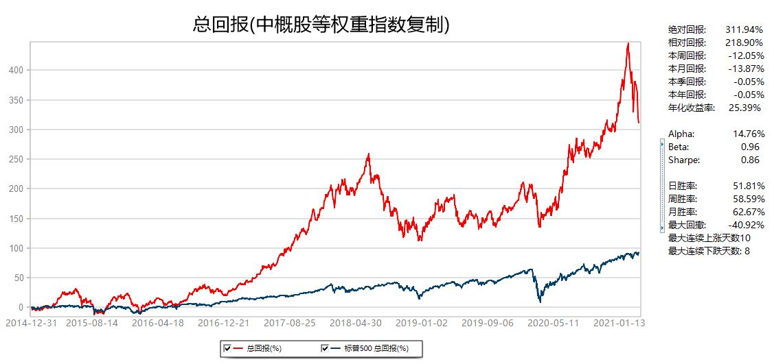2015年1月1日以来中概股等权重指数上涨311.94%,大幅跑赢标普500指数,相对回报率为218.9%,总体表现明显优于美股大盘,但近期回落明显。