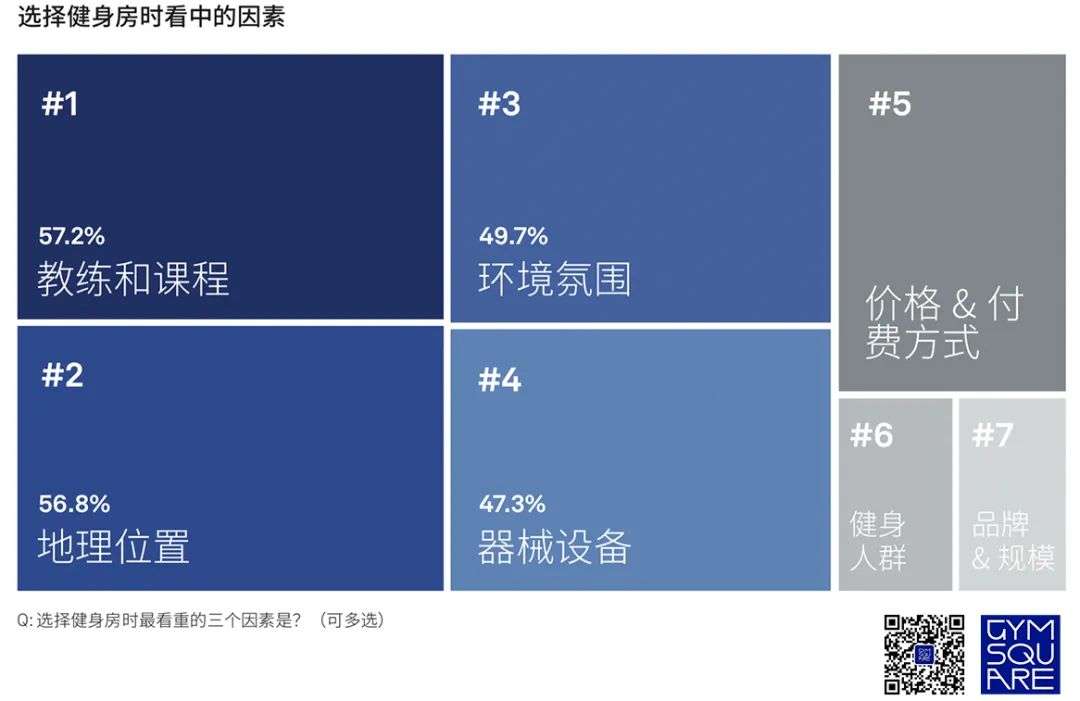 从精练GymSquare发布的《2020中国健身行业报告》来看,「教练和课程」对于选择一家健身房的重要性,已超出「地理位置」,更是远高于「价格及付费方式」。