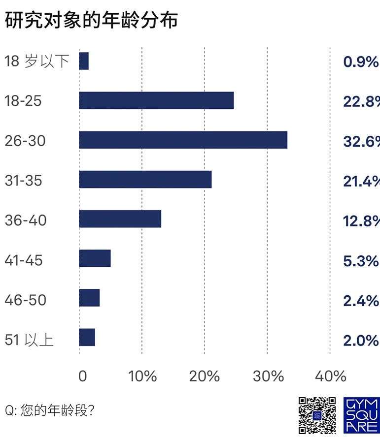 根据精练GymSquare发布的《2020中国健身行业报告》,18-30岁人群是最主要的健身消费者构成,已占总样本的55.4%。其中18-25岁占22.8%,26-30岁占32.6%。