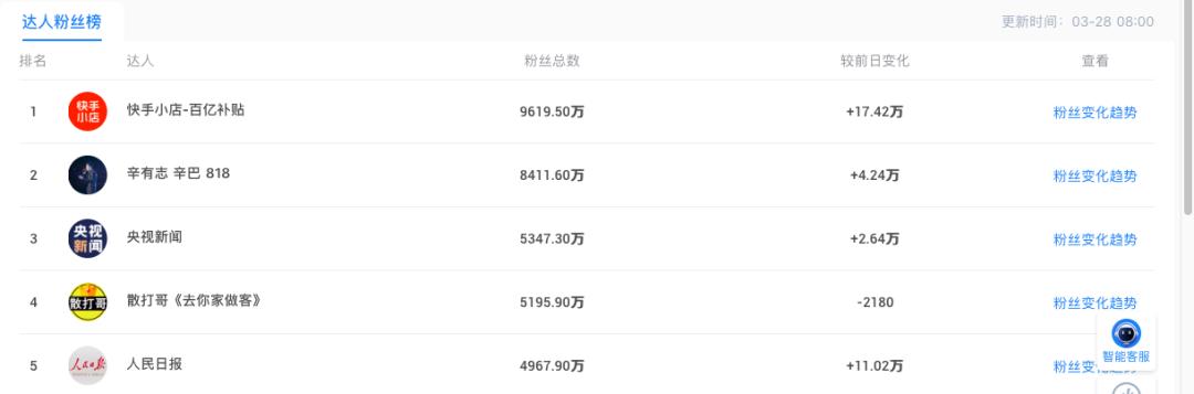 截至3月28日20点,快手的达人粉丝榜上,总粉丝第一名,是快手官方直播间“快手小店”,辛巴位列第二位,但是个体主播的第一位。复播一夜之后,辛巴的粉丝涨了4.24万。