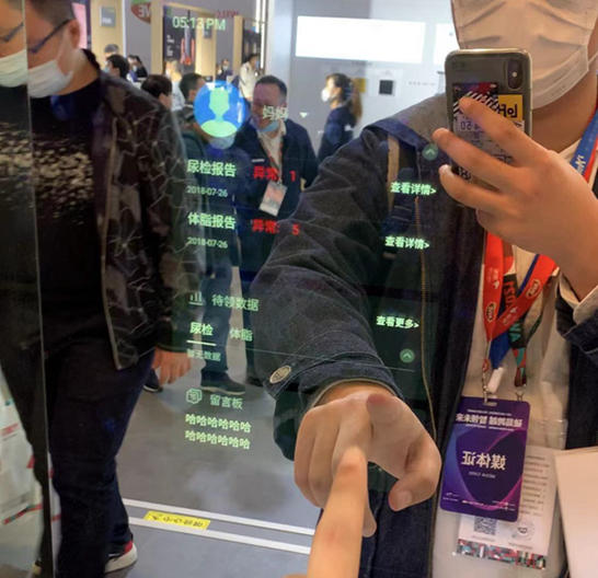 某个清晨,你醒后去卫生间“例行公事”,便后洗漱时,发现面对着的镜子似乎成了精,镜面上不仅开始显示当天的天气状况、刚刚如厕时顺带做的体脂率、尿液检测的数据,还播放起了音乐。在你诧异究竟发生了什么事的空档,一则来自妈妈的留言又突然弹了出来。