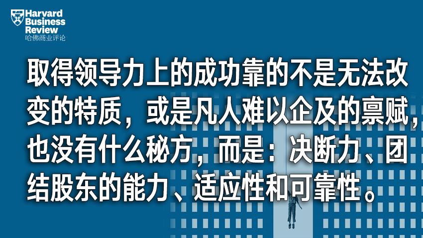 最终,我们的研究显示,取得领导力上的成功靠的不是无法改变的特质,或是凡人难以企及的禀赋,也没有什么秘方:决断力、团结股东的能力、适应性和可靠性。尽管没有放之四海而皆准的方法,但聚焦于这些基础行为将能够提高董事会选对CEO的可能性,以及增加领导者在该职位上取得成功的几率。