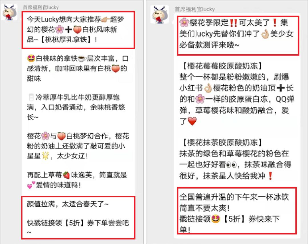 举个例子,瑞幸的福利官每天给我发“美式咖啡搭配早餐”的邀请,偶尔我会心动下单几次。