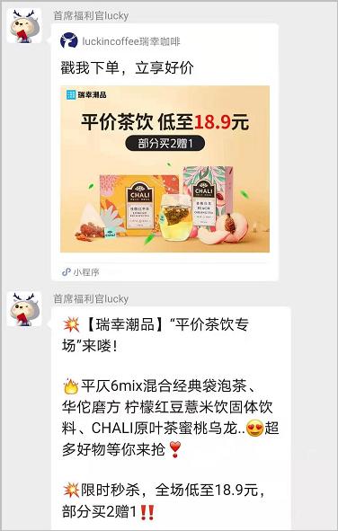 另外,瑞幸还会不定期在群内搞低价促销。