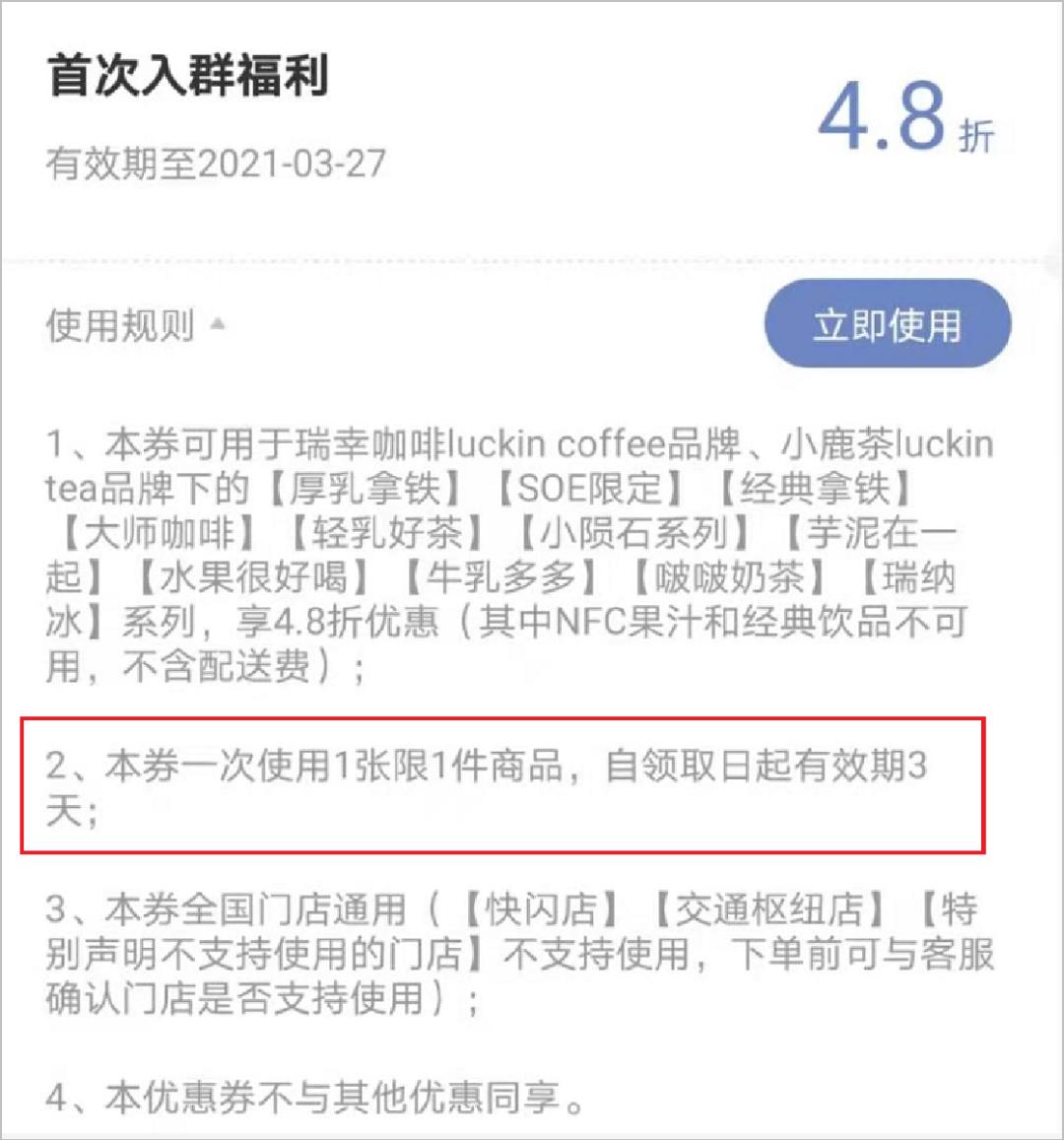 另外,入群福利优惠券的使用时间是有限制的,如果三天内用不掉不用就会自动过期。
