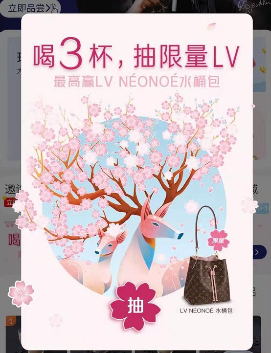比如最近点进小程序的首页,就能看见“喝三杯,抽 LV ”的醒目海报。