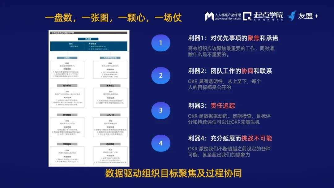 我认为数据驱动组织目标的聚焦和过程的协同是最重要的,作为产品经理或一号位,需要具备: