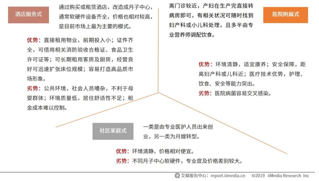 目前来看,这个市场主要包括:以下三种运营模式。大部分新兴月子中心采取酒店服务式运营模式。