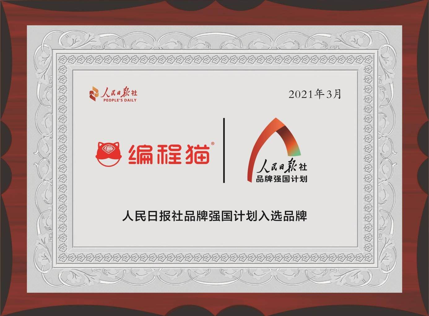 编程猫入选人民日报社“品牌强国计划”