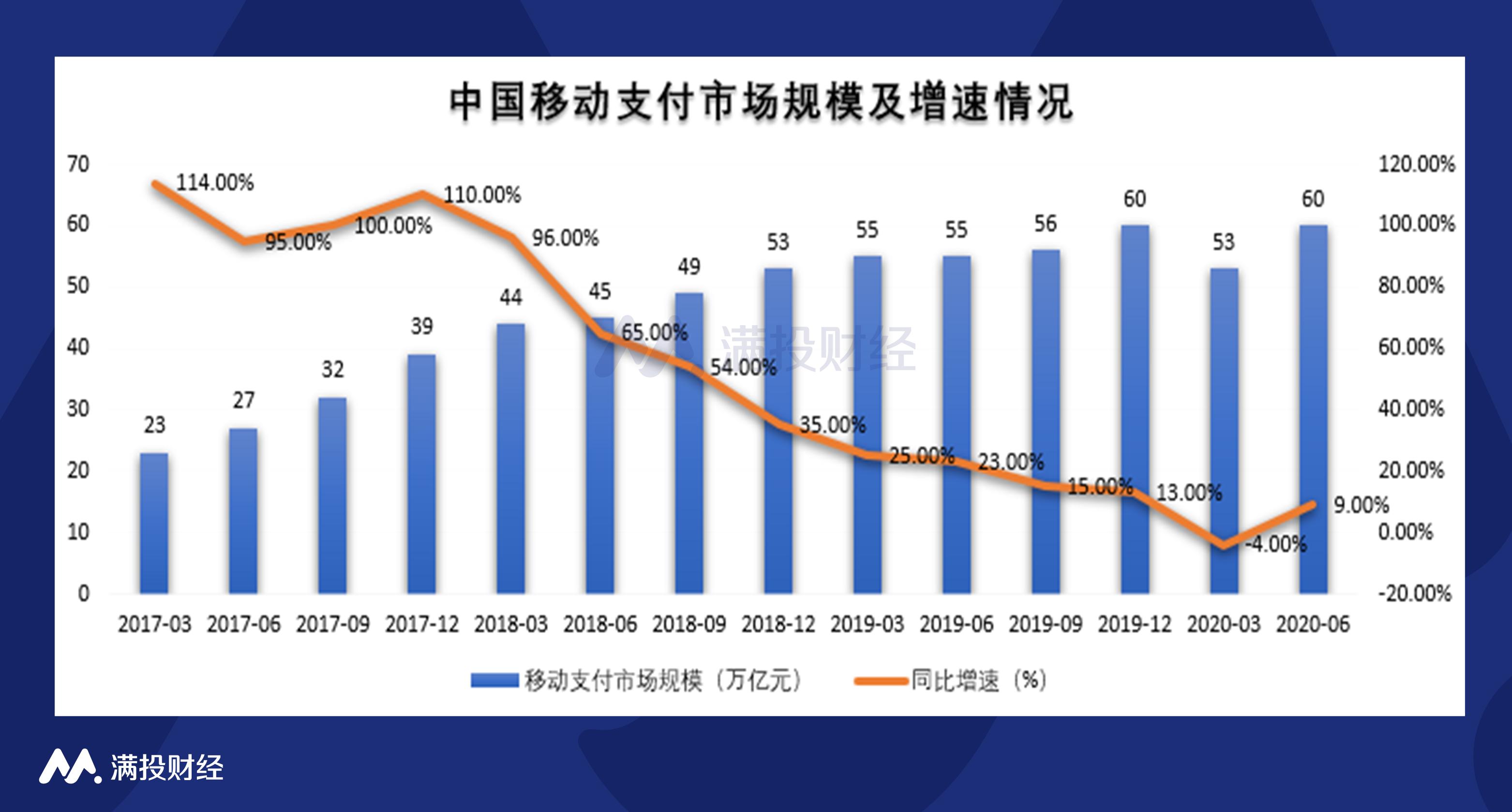 近年来,互联网公司纷纷进军移动支付行业。现阶段中国第三方支付是由阿里以及腾讯作为巨头,网易、苏宁、京东、百度、新浪、美团、唯品会,拼多多已间接通过收购方式获得牌照,在2020年,字节跳动也宣布拿下支付牌照。