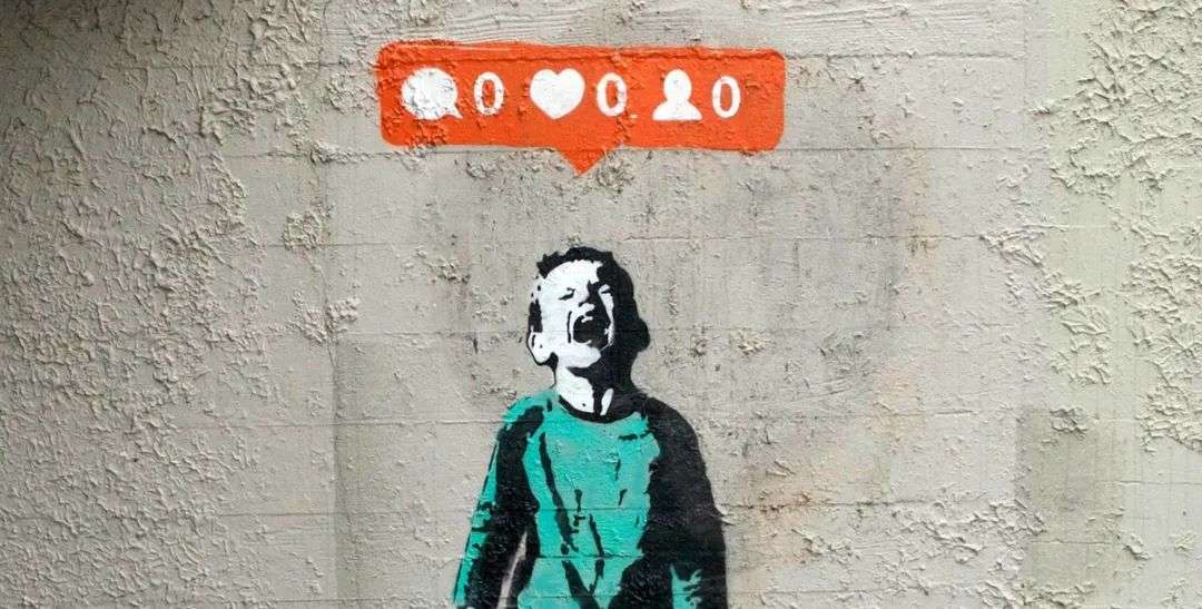 著名涂鸦艺术家Bansky的作品“无人点赞”,描绘了未成年人在网络上因缺乏互动回应而陷入价值焦虑时的情景 | Banksy