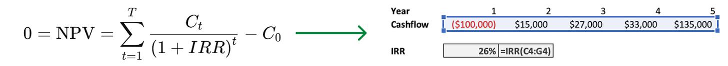Excel是说明性语言,因为你可以通过键入公式来定义想得到的内容,而不必关心怎么去执行一步步的操作步骤。我不需要知道公式(怎么进行编程就更不用说了)就能计算投资的内部收益率(IRR)。我只需要输入= IRR(C4:G4)然后结果就出来了!