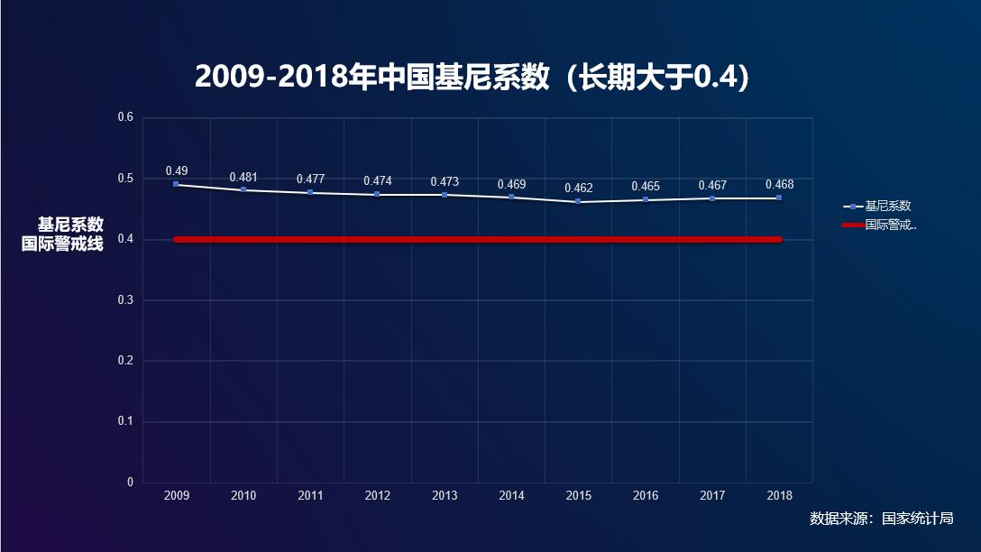 2009-2018年中国基尼系数趋势图(数据来源:国家统计局)