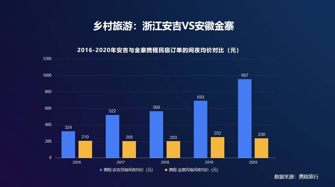 可以形成对比的是湖州安吉。调研中发现,安吉几年前酒店平均价格仅有300多块,但现在已经接近1000块,翻了数倍。而这只是酒店收益上的提升。实际上,由于中高端客人停留间夜的提升,由其带动的相关旅游消费要远远高于这些。