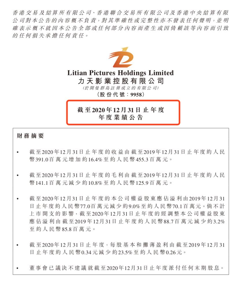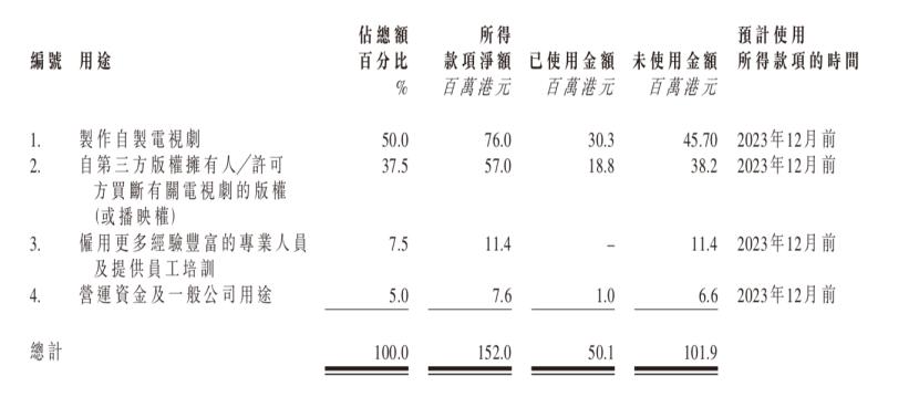 IPO募资方面,力天影业去年6月赴港上市,扣除包销佣金及全球发售的相关开支,募资净额约1.52亿港元。