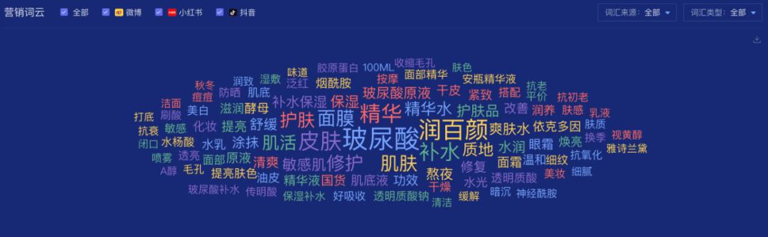 另外,根据时趣洞察引擎显示,玻尿酸的社交讨论热度一直稳居不下,当谈到玻尿酸时“润百颜、补水、精华、面膜”等护肤关键词仍是关注重点。可以看到玻尿酸的功能场景更多是聚焦在护肤,而本次品牌跨场景到口服也是一个新的尝试。