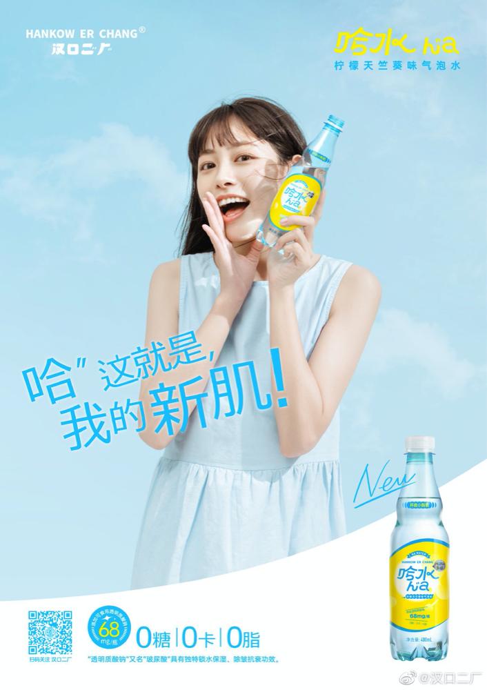 最近,汉口二厂和华熙生物上线了一款新品玻尿酸气泡水“哈水”。
