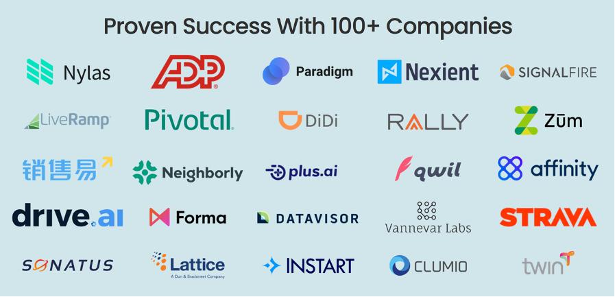 公司成立后前一两年主要是研发阶段,包括和一些早期的试点企业紧密合作研发产品。近两年多服务过百家客户,包括很多硅谷各个阶段大大小小的高科技公司,也成功帮助过几家囯内头部互联网和SaaS公司(比如滴滴,销售易)找寻北美高端软件人才。
