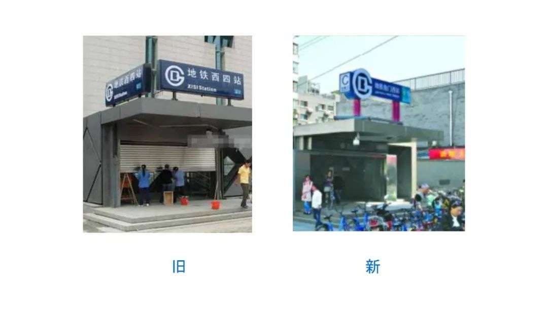 同时因为背景色由白底更改为“科技灰”,或者直接使用原色玻璃,增加了背景与 logo 之间的对比度,让店招在远方看来更为醒目。这就像北京地铁对外部招牌的微调一样,也是体现了让地铁 logo 更醒目的设计原则。