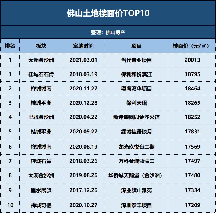 佛山楼面价top10里面,其中有6宗地都是去年成交的,今年最新成交的一宗楼面价直接破2万,成为佛山新晋地王。