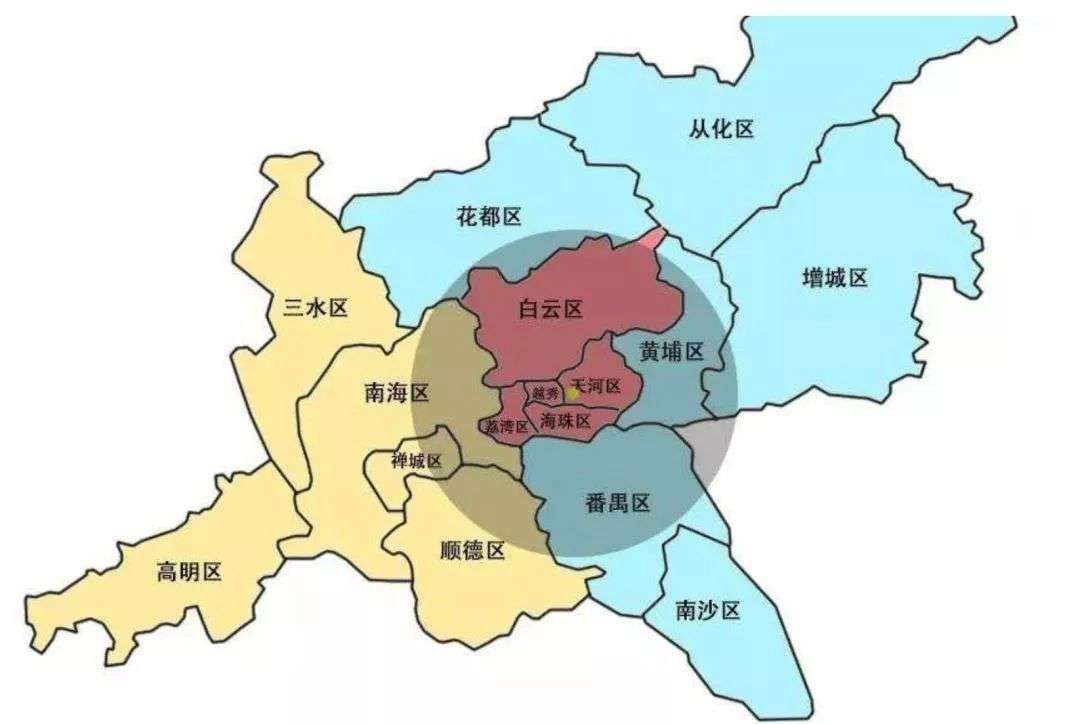 广州、佛山两地市政府近距离20公里。