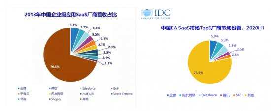 不过,对现在的金蝶来说,“云转型”尚未能言是否成功,真正成功的标志,要看金蝶何时能实现稳定盈利且市场份额能实现进一步的提升,对比18年企业级SaaS的市场份额,虽然金蝶一直稳居第一,但和第二名之间的差距已经逐渐缩小,而且看得出来用友也在奋起直追。