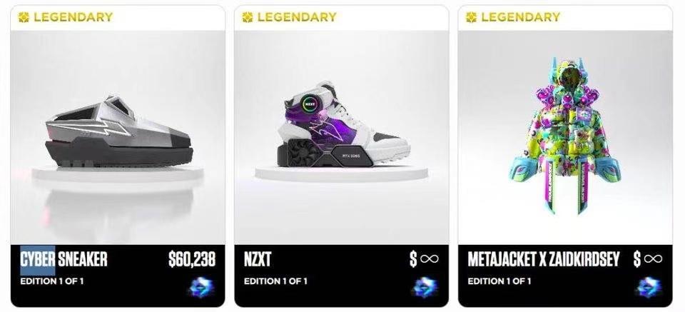 最近RTFKT与18岁艺术家Fewocious合作推出了定价分别为3000、5000和10000美元的虚拟鞋,621对7分钟内售罄,净赚310万美元。