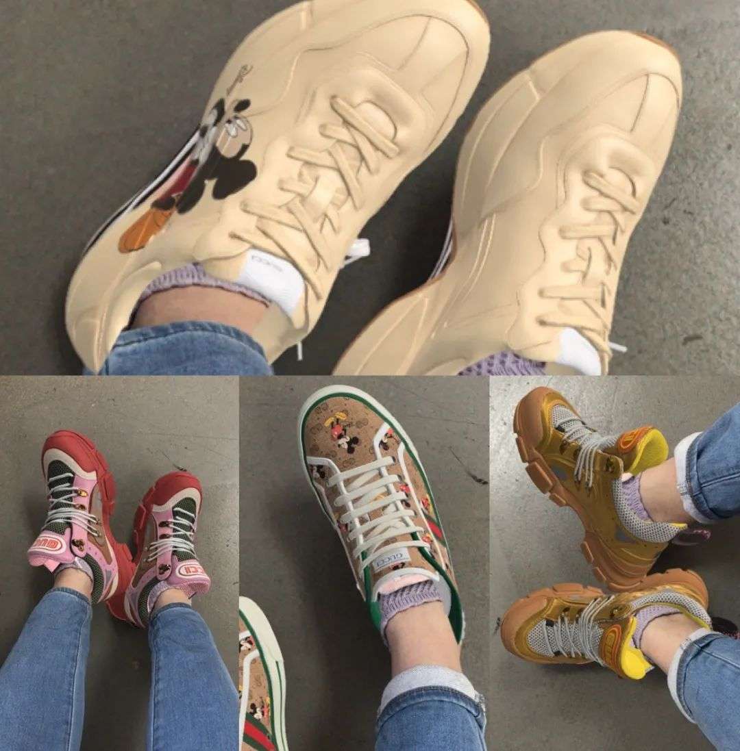 看了她的上脚照片,这花里胡哨差点闪瞎眼睛的荧光,是非Gucci创造不出来的配色了。