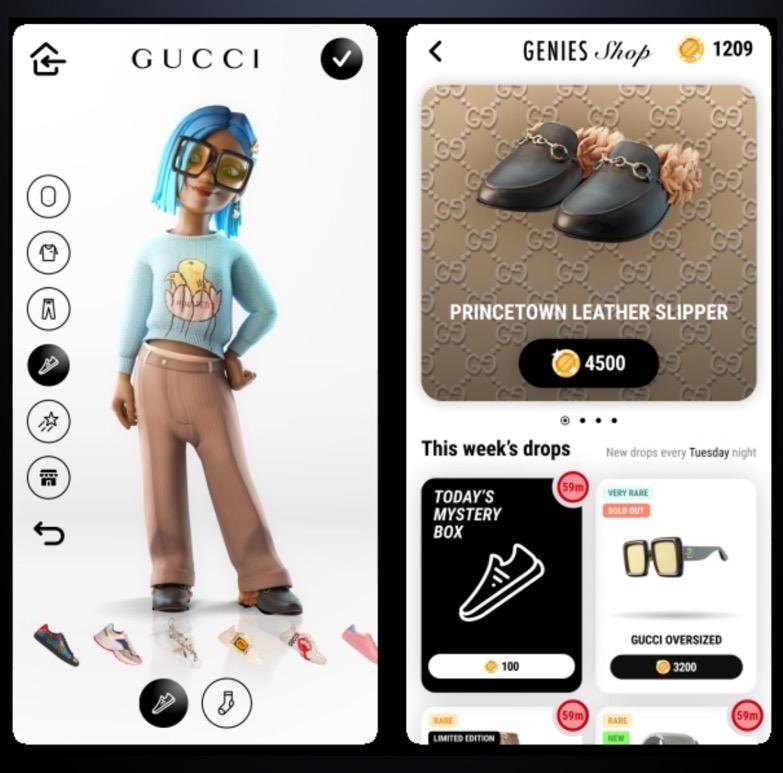 简单来说Genies是一款美版3D“QQ秀”+换装游戏。充值换金币才能给自己的小人穿上Gucci,在这里就算是矢量图,带着logo就还是奢侈品。