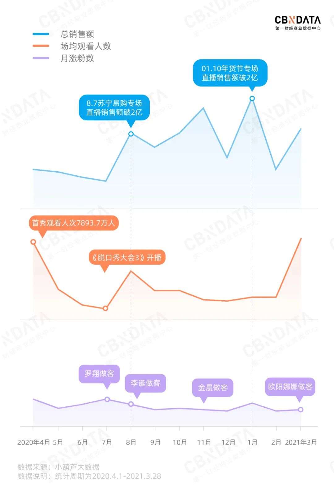 回顾过去一年罗永浩直播间的销售数据,仅在去年7月《脱口秀大会3》开播之际迎来短暂的低点,此后便一路走高。去年8月的苏宁易购专场和今年1月的年货节专场,单场销售额均破2亿。